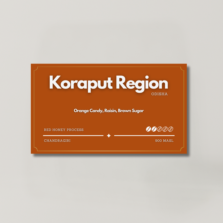 A rare red honey lot from the hills of Koraput, produced by Odisii Coffee. Cherries were pulped with minimal water and fermented in a sealed environment to preserve sweetness and clarity, before being shade-dried on raised beds.