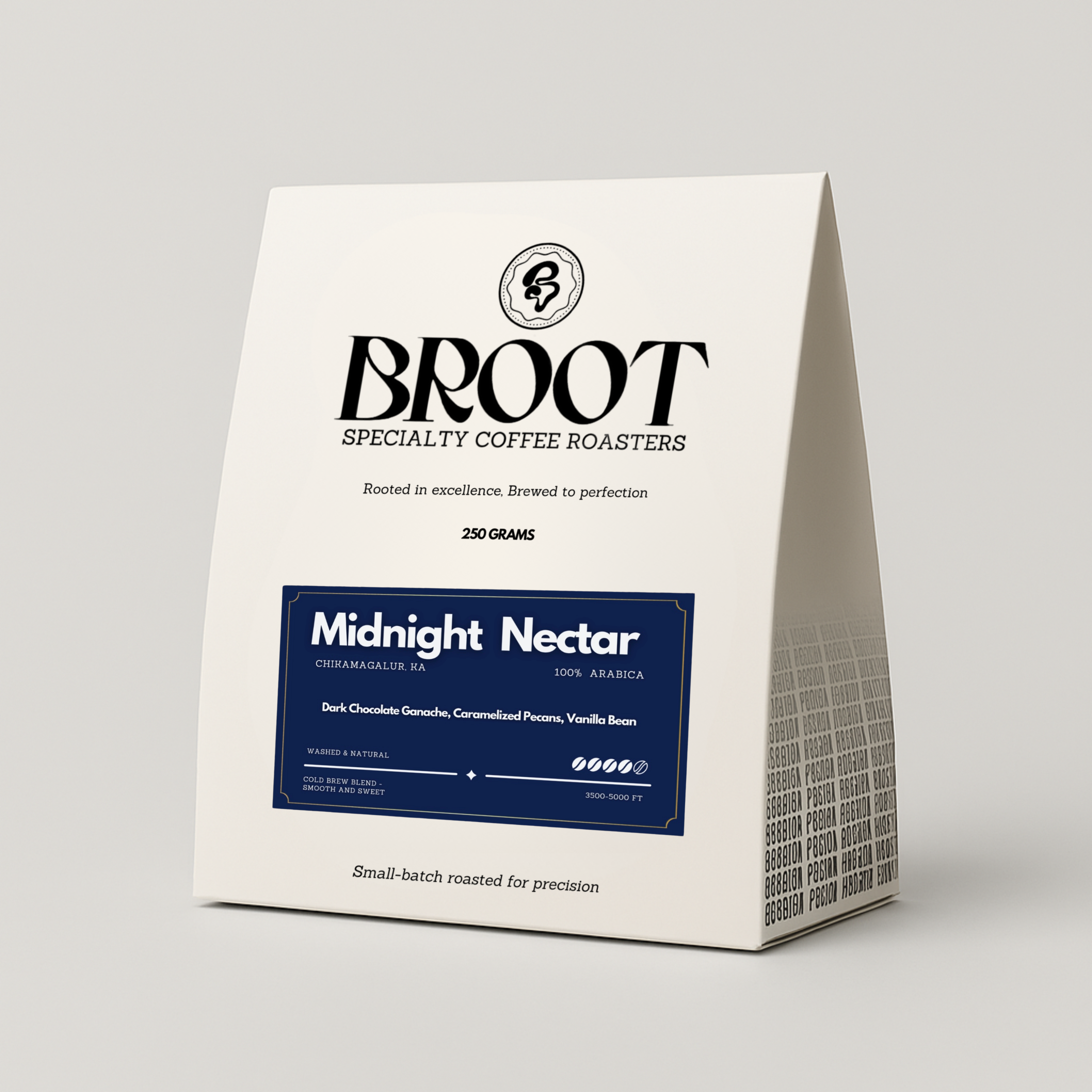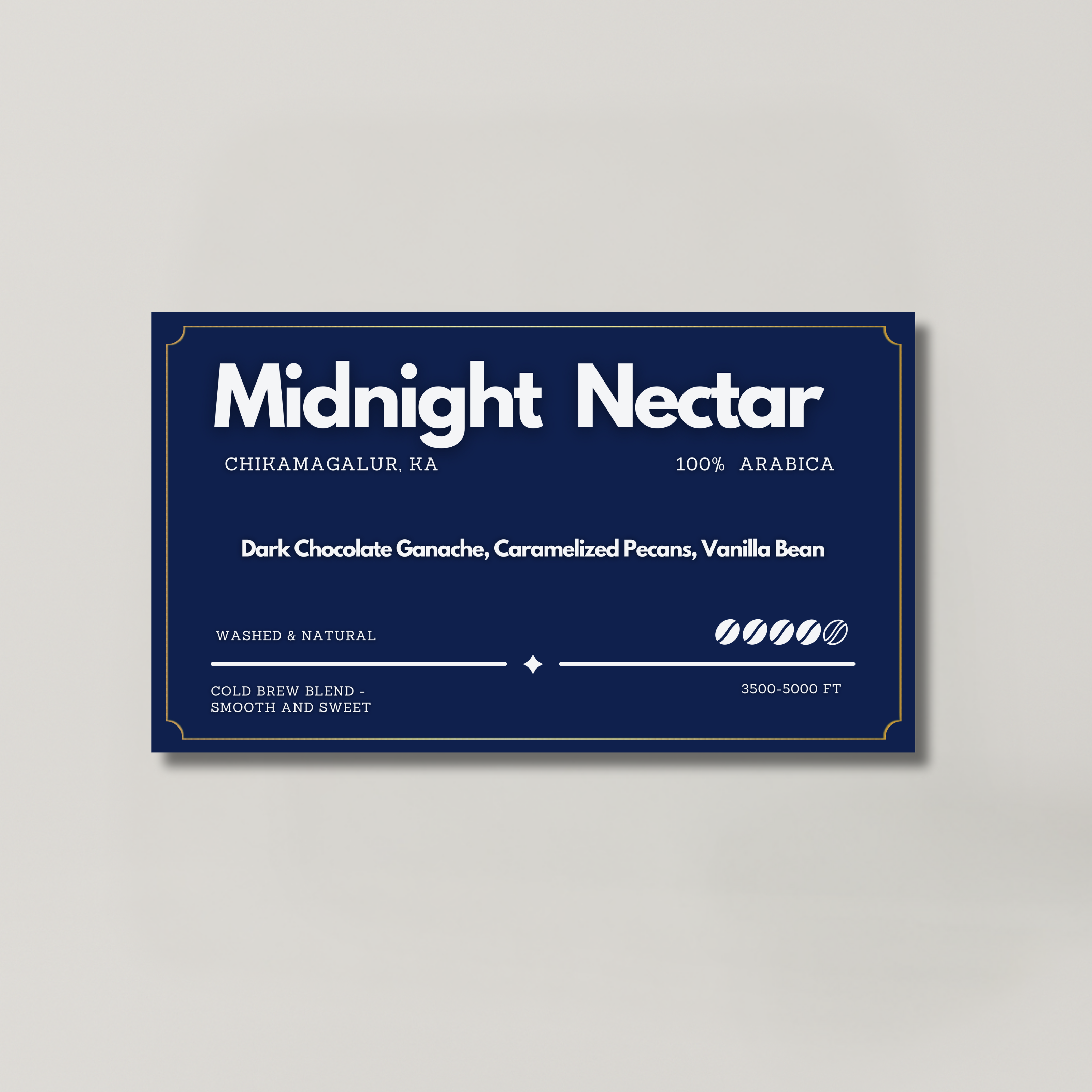Midnight Nectar is your go-to cold brew for late evenings and mellow vibes. Velvety and indulgent, it’s packed with the richness of dark chocolate ganache, nutty-sweet caramelized pecans, and delicate hints of vanilla. This smooth, sweet brew is a gentle caffeine hug in a glass — best enjoyed slow and chilled.