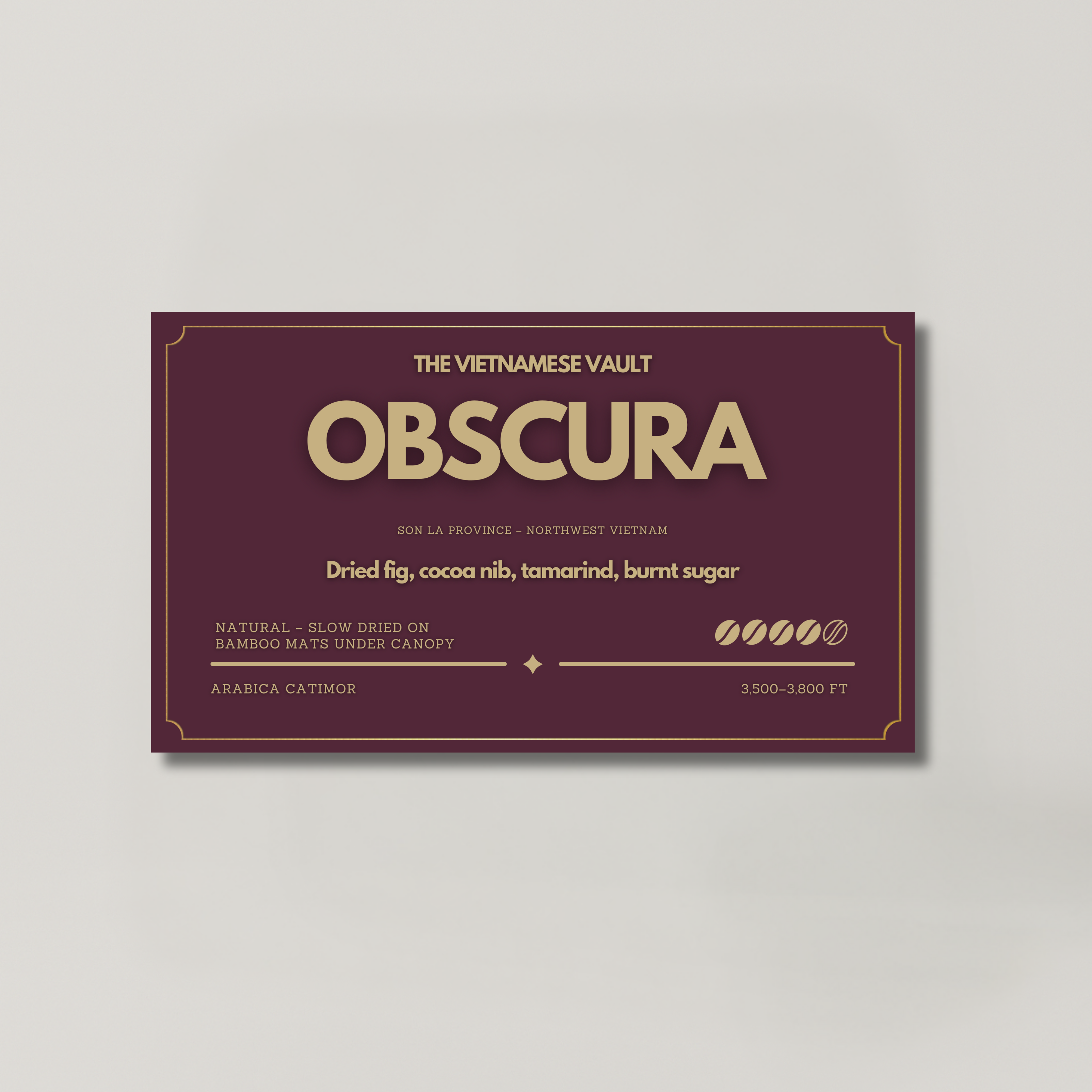 Grown under jungle canopy and slow-dried on bamboo mats, OBSCURA is earthy, syrupy, and bold. Expect dried fig, cocoa nibs, and tamarind with a burnt sugar finish.