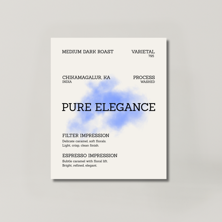 Clean, crisp, and elegant — this blend is perfect for those who love coffee on the lighter, smoother side. Pure Elegance carries subtle floral notes with a soft caramel undertone, making it a refreshing cup even as a bright, clean espresso shot.