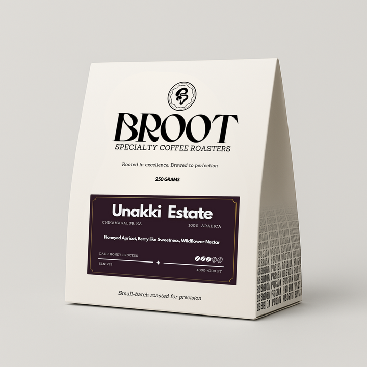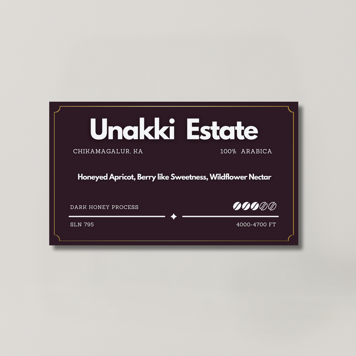 Sourced from the lush slopes of Unnaki Estate, this Arabica is processed using the Dark Honey method where part of the mucilage is left intact during drying, letting natural sugars soak into the bean. What you get is a cup bursting with golden complexity.