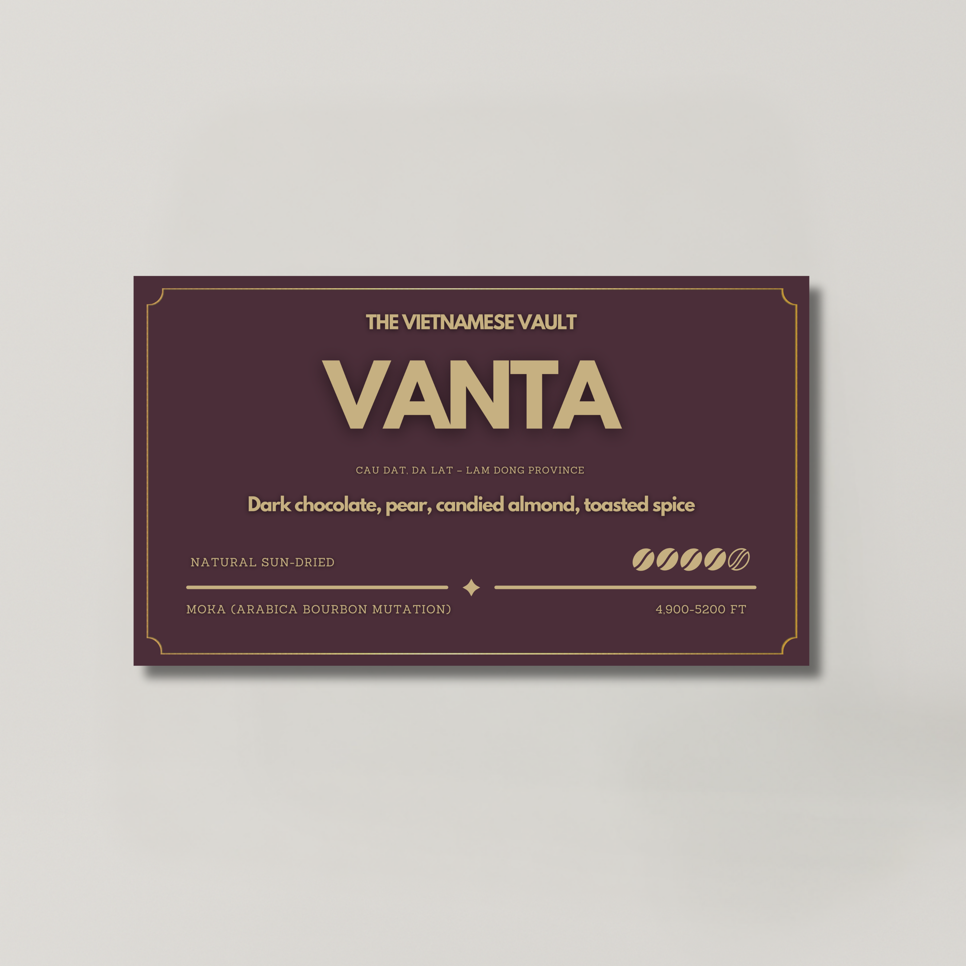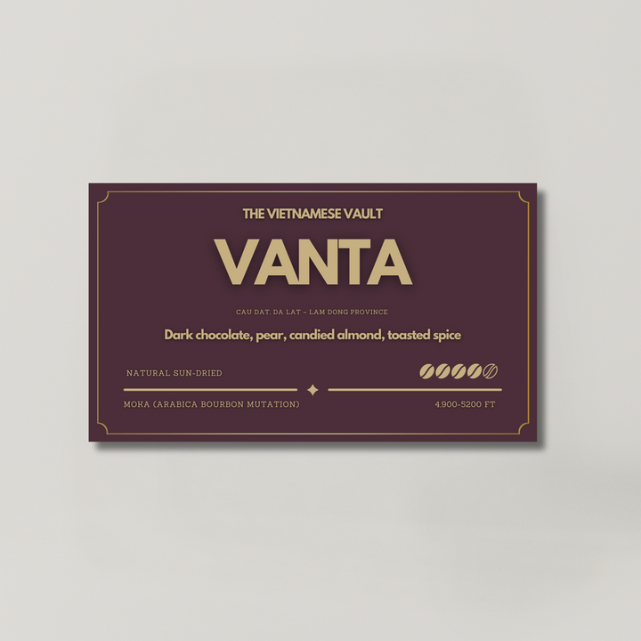 From the misty highlands of Cau Dat, this heirloom Moka coffee delivers a dense, cocoa-laced body with notes of pear, toasted spice, and dark chocolate.